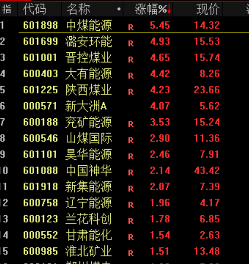 煤炭开采股拉升,安泰集团涨停,云煤能源、晋控煤业、陕西黑猫、山煤国际、郑州煤电跟涨。
