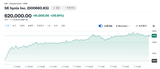 在亚马逊CEO安迪·贾西表示两家公司计划联合探索“代理型AI”等新兴技术后,周一SK海力士股价一度飙升11%。该股还受到SK证券分析师上调目标价(自48万韩元大幅上调)及公司录得创纪录季度利润的推动。